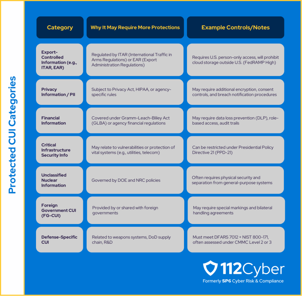 CUI Categories Requiring Additional Security Protections