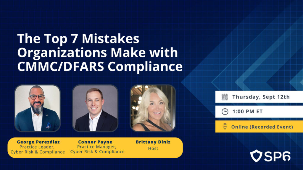 Watch as our SP6 Cyber Risk and Compliance experts share their experience with common issues clients face when working on becoming CMMC/DFARS compliant.
