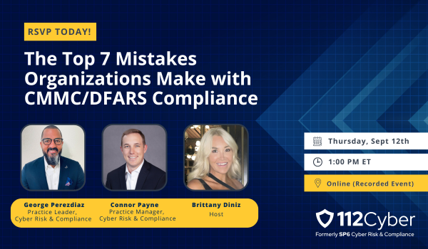 Watch as our 112Cyber experts share their experience with common issues clients face when working on becoming CMMC/DFARS compliant. We’ll walk through the top 7